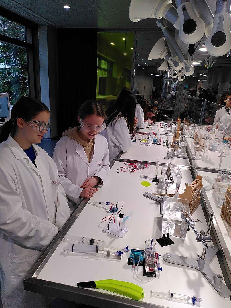 - Die 11. Klassen besichtigten das Verkehrs- und Kommunikationsmuseums und besuchten im Deutschen Museum Nürnberg den Workshop “Zukunft Wasserstoff” und hatten Zeit, das Museum selbst erkunden. Im Verkehrs- und Kommunikationsmuseum erhielten die Schülerinnen und Schüler im Rahmen einer Führung einen Überblick über Entwicklung und Aspekte der Kommunikation sowie über die Geschichte und den Ausbau der Eisenbahn in Deutschland. Experimente mit einer Brennstoffzelle führten die Schülerinnen und Schüler an fachliche Hintergründe einer möglichen Zukunftstechnologie heran.