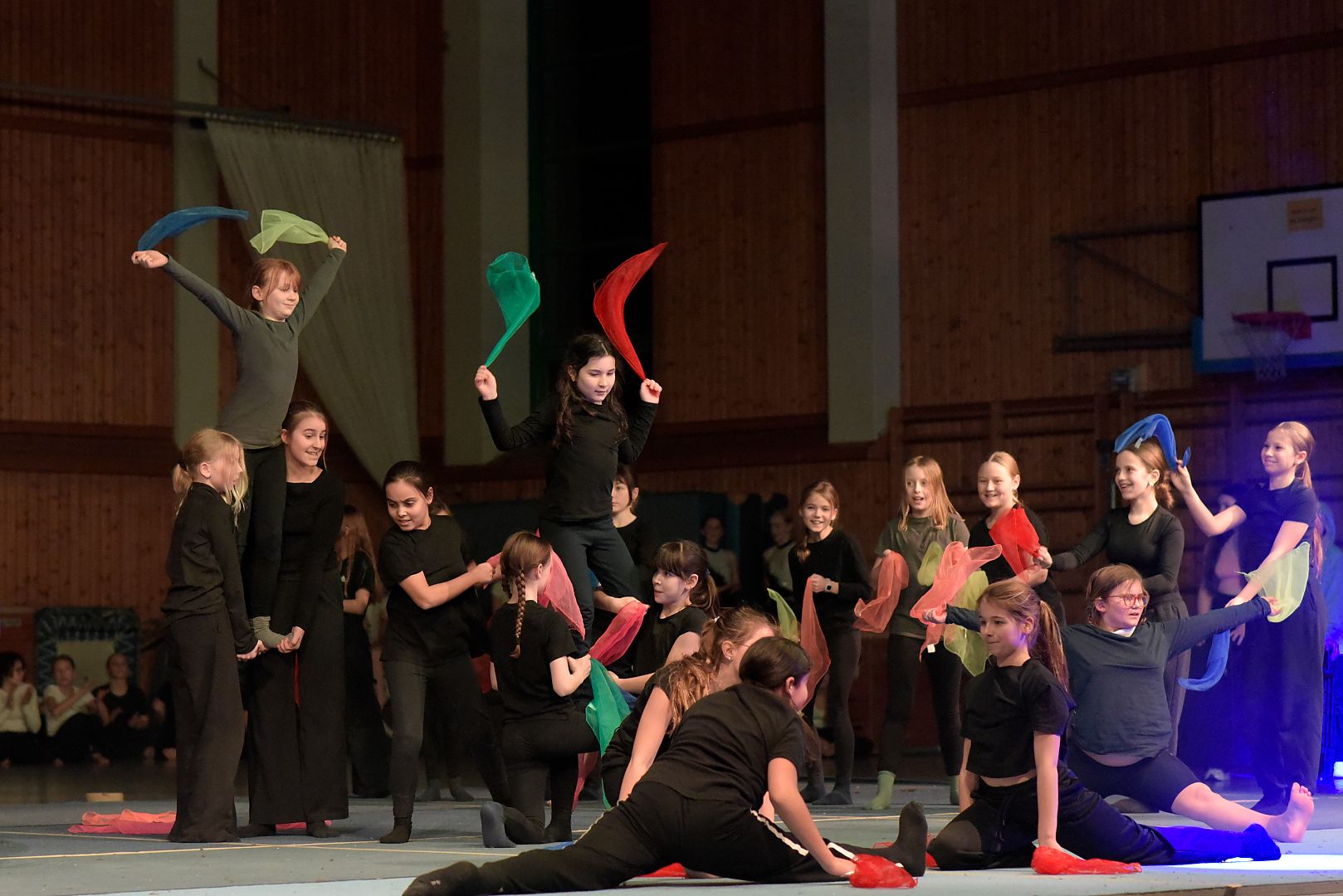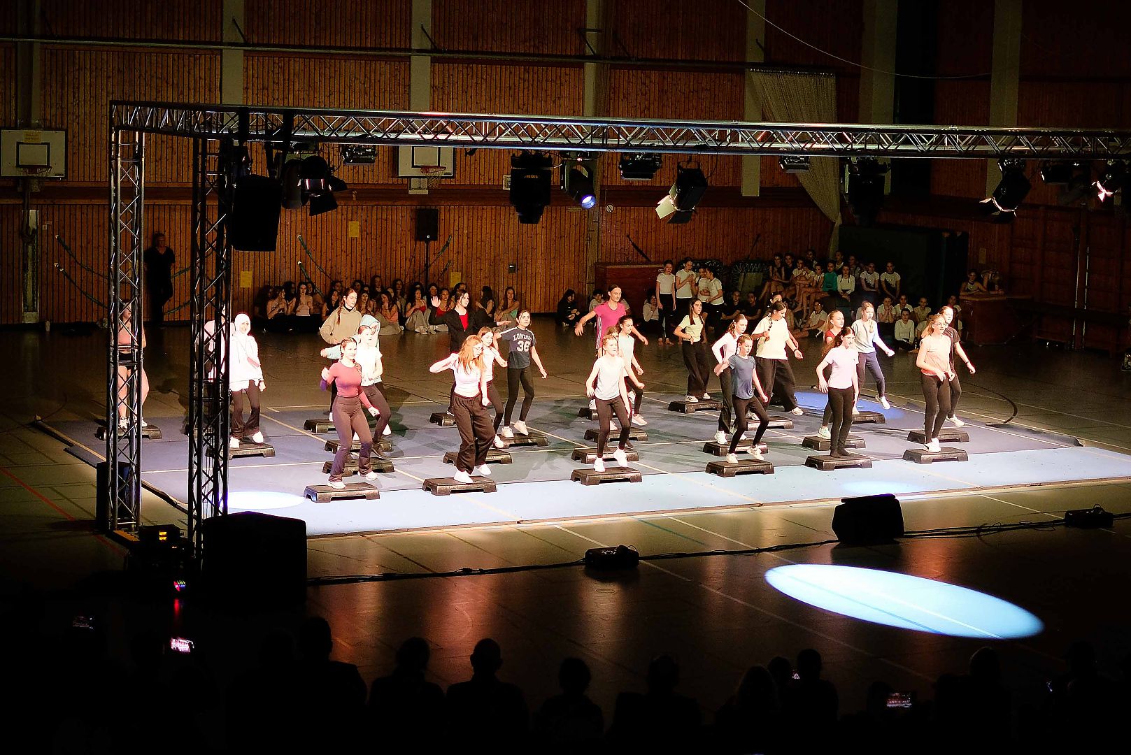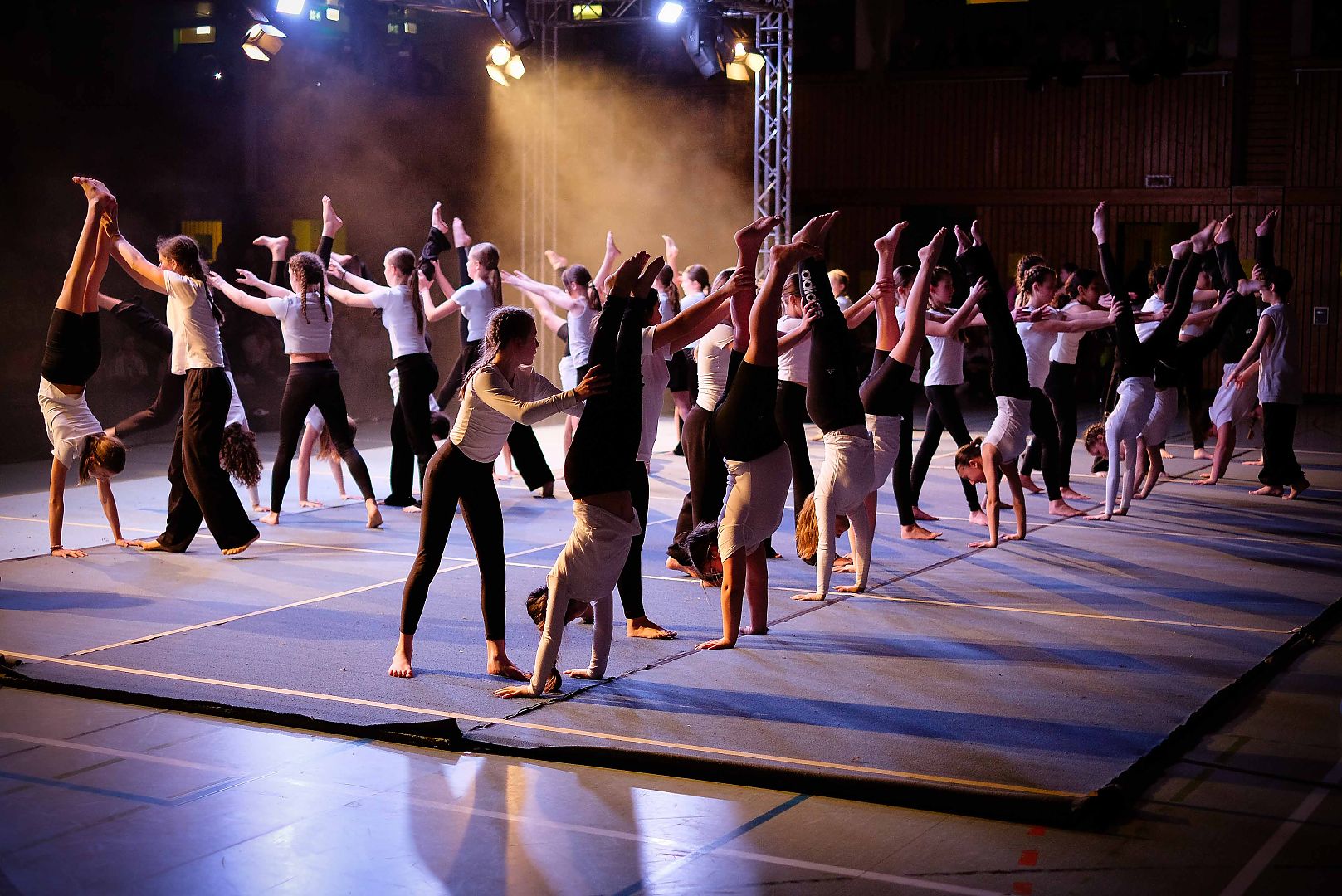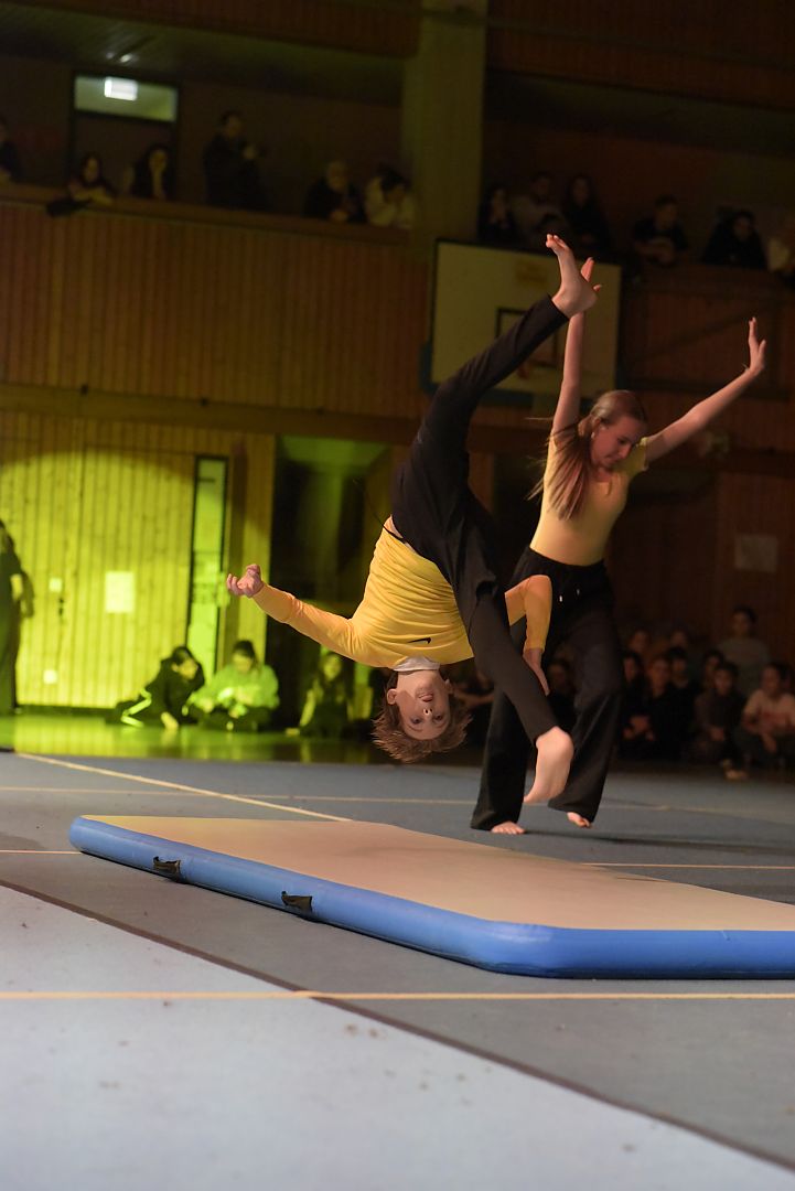 Die diesjährige Sportgala bot den Zuschauern wieder ein Feuerwerk aus Tanz, Turnen und Akrobatik. Für die große Show haben unsere Schülerinnen und Schüler mit ihren Lehrkräften wochenlang trainiert und geprobt und das Ergebnis konnte sich sehen lassen. Die Licht- und Ton-Gruppe sorgte wieder für den richtigen Sound und stimmungsvolle Illumination.
