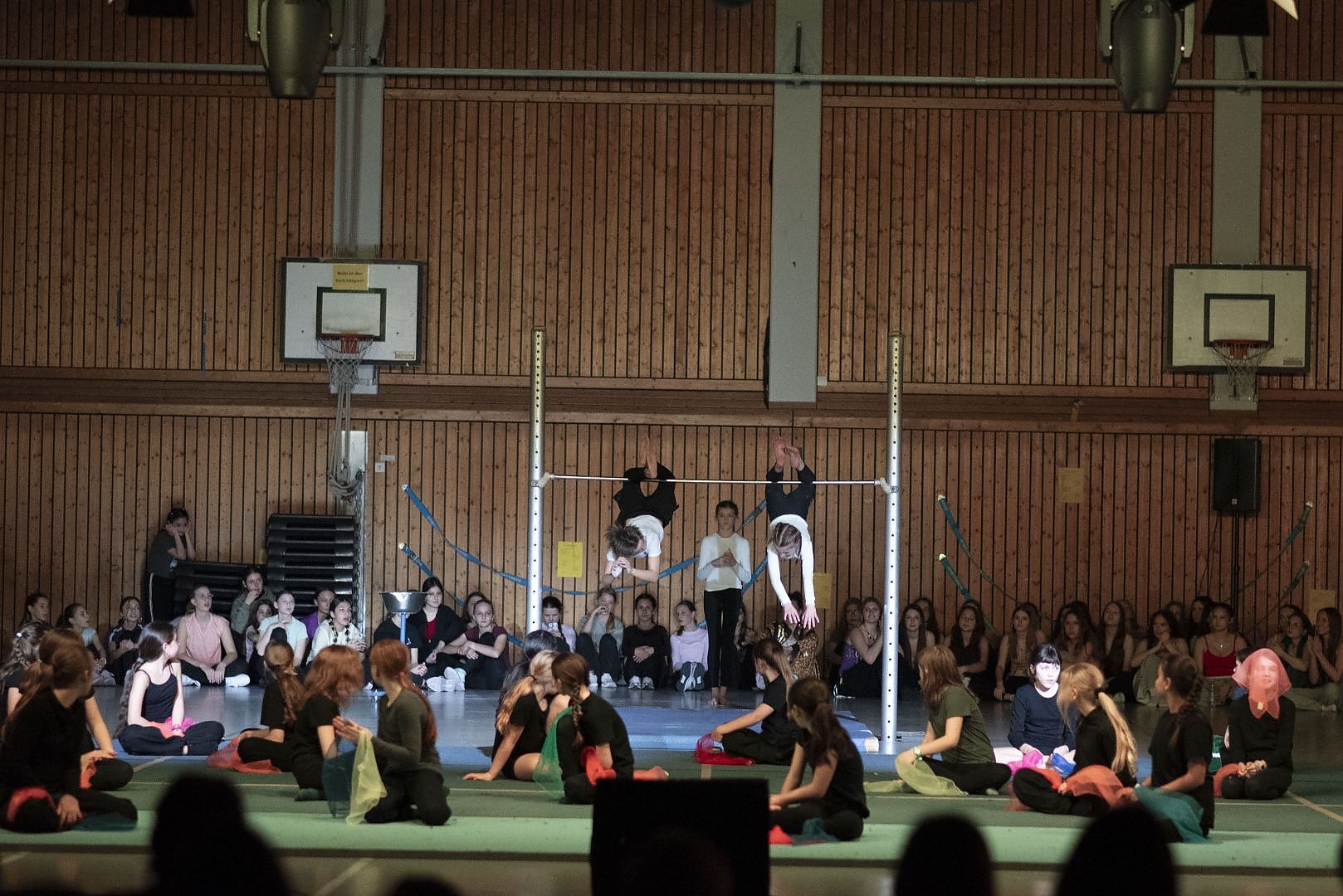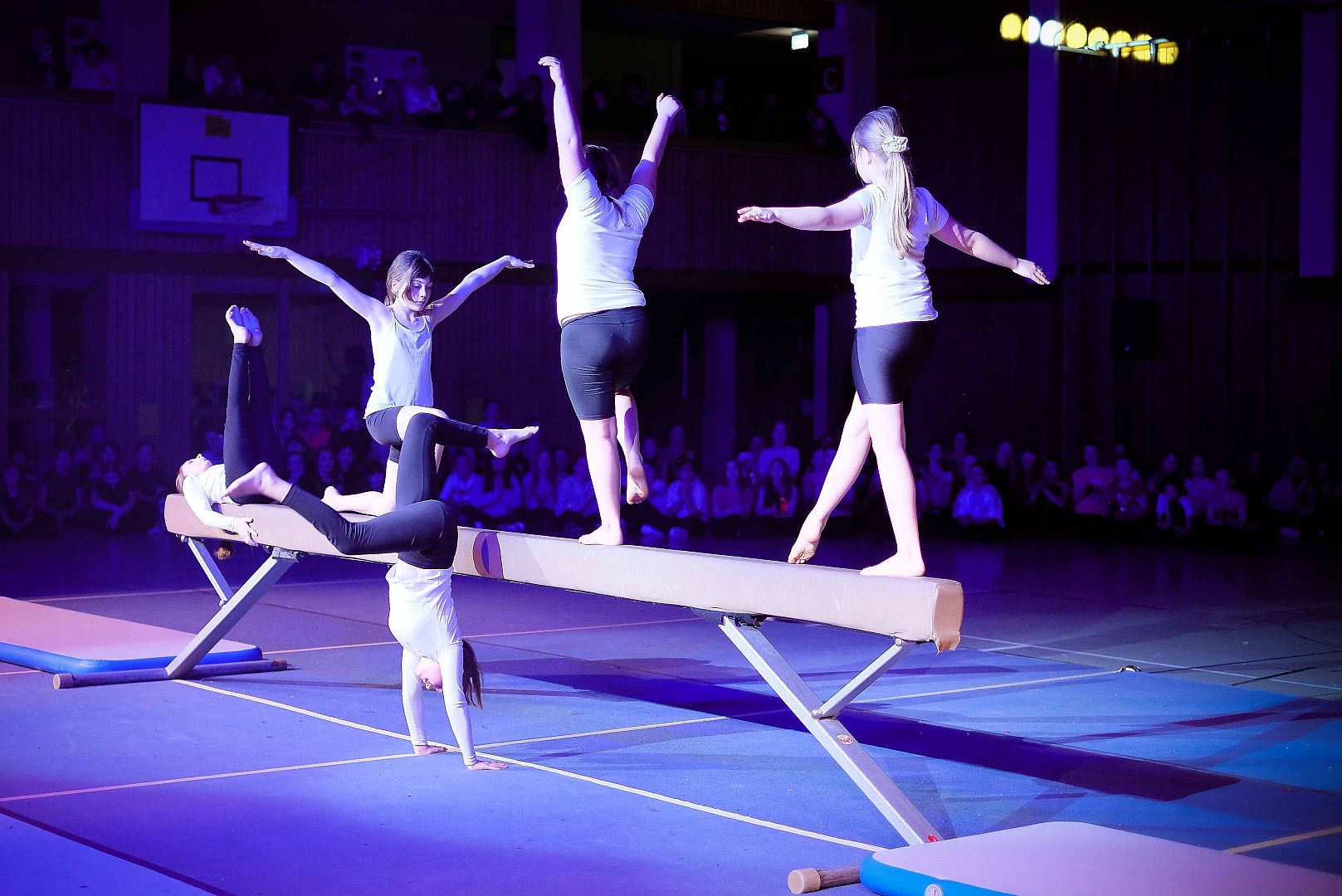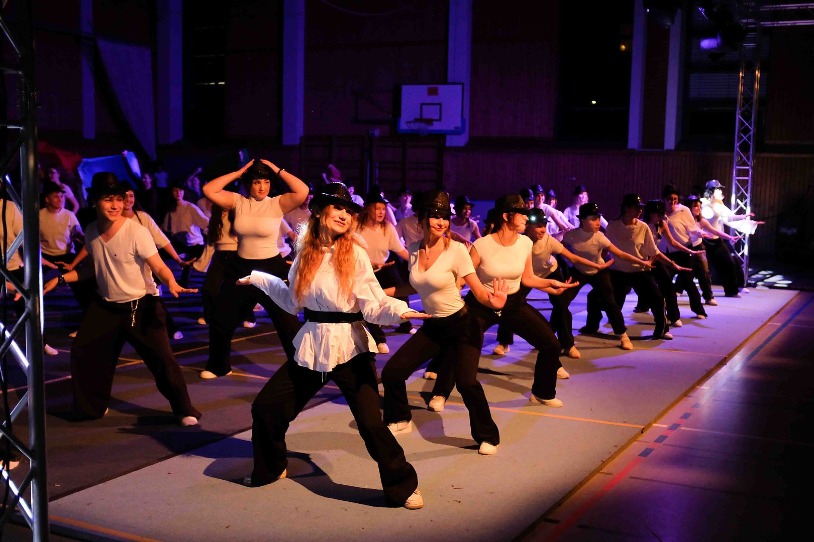 Die diesjährige Sportgala bot den Zuschauern wieder ein Feuerwerk aus Tanz, Turnen und Akrobatik. Für die große Show haben unsere Schülerinnen und Schüler mit ihren Lehrkräften wochenlang trainiert und geprobt und das Ergebnis konnte sich sehen lassen. Die Licht- und Ton-Gruppe sorgte wieder für den richtigen Sound und stimmungsvolle Illumination.