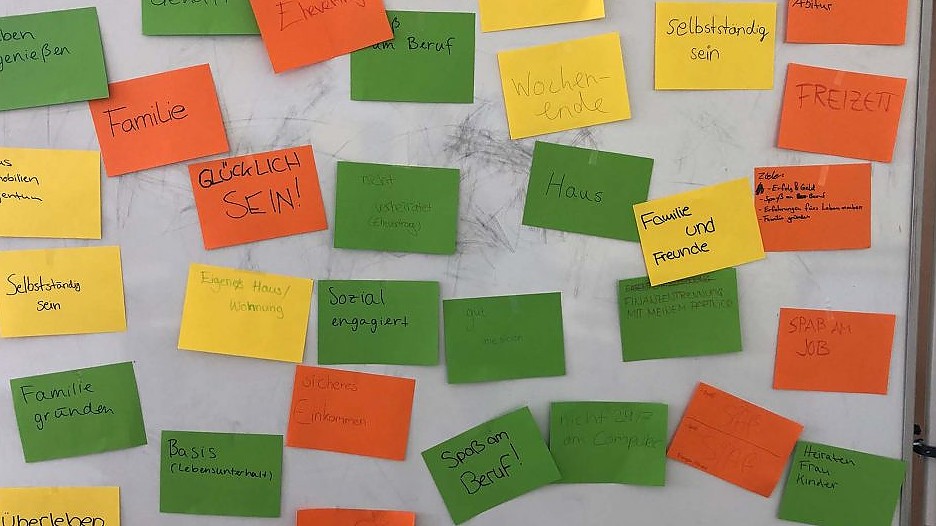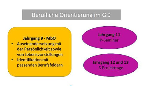 Das Modul der beruflichen Orientierung (MbO) wird als eigenes Fach in der 9. Jahrgangsstufe eingeführt. Leitfach ist das Fach Wirtschaft und Recht. Der Fokus liegt auf der Individualität der Lernenden und ihren Kompetenzen. Unterricht als Blockveranstaltung – ohne Noten – und die Lehrkraft als Coach sollen den Schülerinnnen und Schülern die Möglichkeit geben, eigenständig eine reflektierte Berufswahlentscheidung zu treffen und den Prozess aktiv und verantwortungsbewusst anzugehen. Der Einstieg in dieses spannende Projekt mit den 9. Klassen führt über eine Blitzumfrage zur Berufswahl hin zu den Wünschen für die Zukunft.