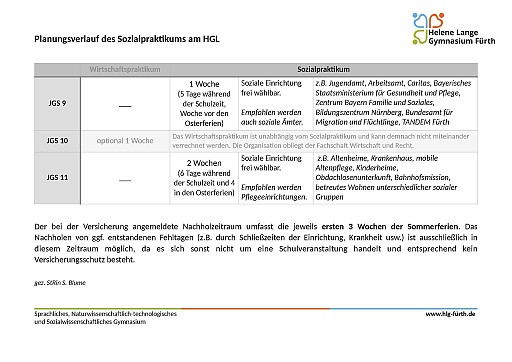 Sozialpraktikum in der 9. und 11. Jahrgangsstufe