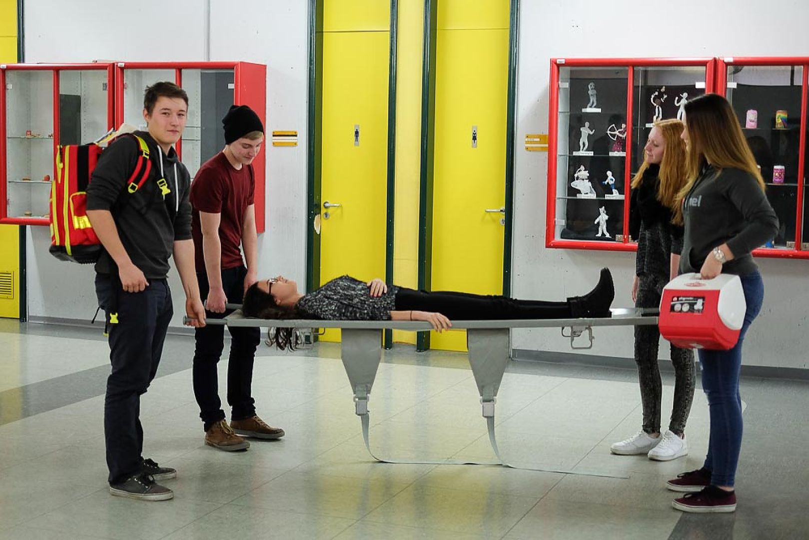 Im Schulalltag werden die Schulsanitäter vor allem bei Sportunfällen, Pausenunfällen oder Erkrankungen alamiert.